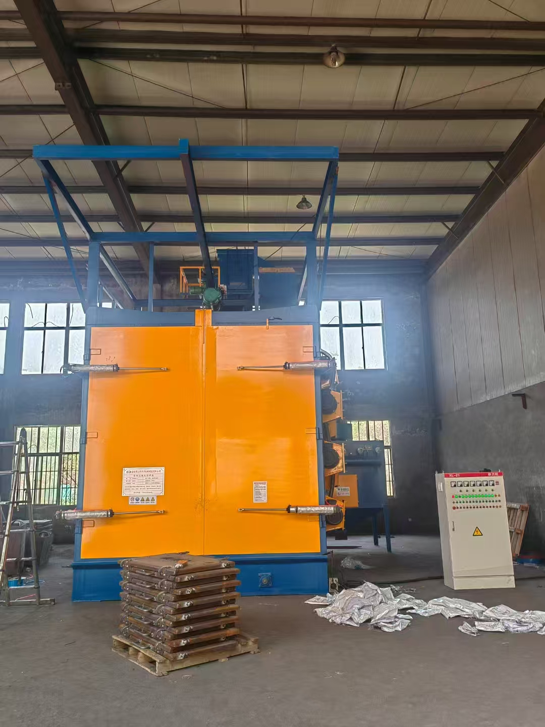鋼結構輥道通過式拋丸機現場調試